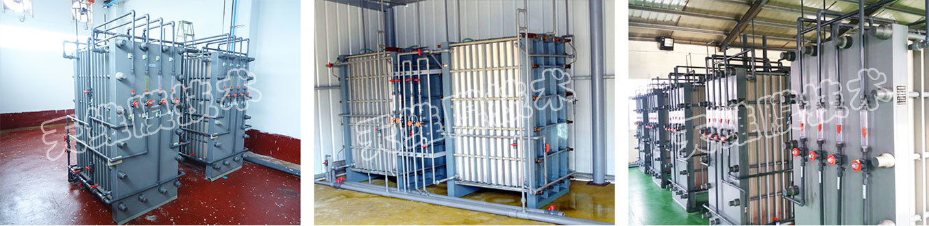 將擴(kuò)散滲析陽膜、滲析室隔板以及擴(kuò)散室隔板按一定順序排列起來,在兩側(cè)放置配水板并用夾緊板夾緊的分離堿的設(shè)備。