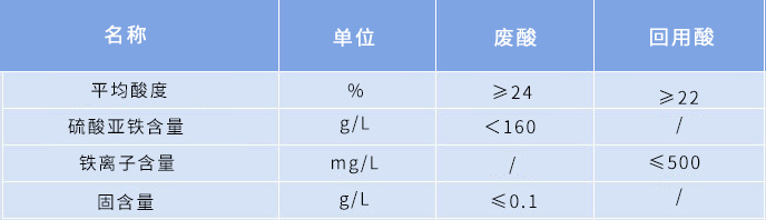回收酸:480噸/天,硫酸濃度≥22%(回收率≥88%),亞鐵含量<500mg/L(截留率≥99%)。